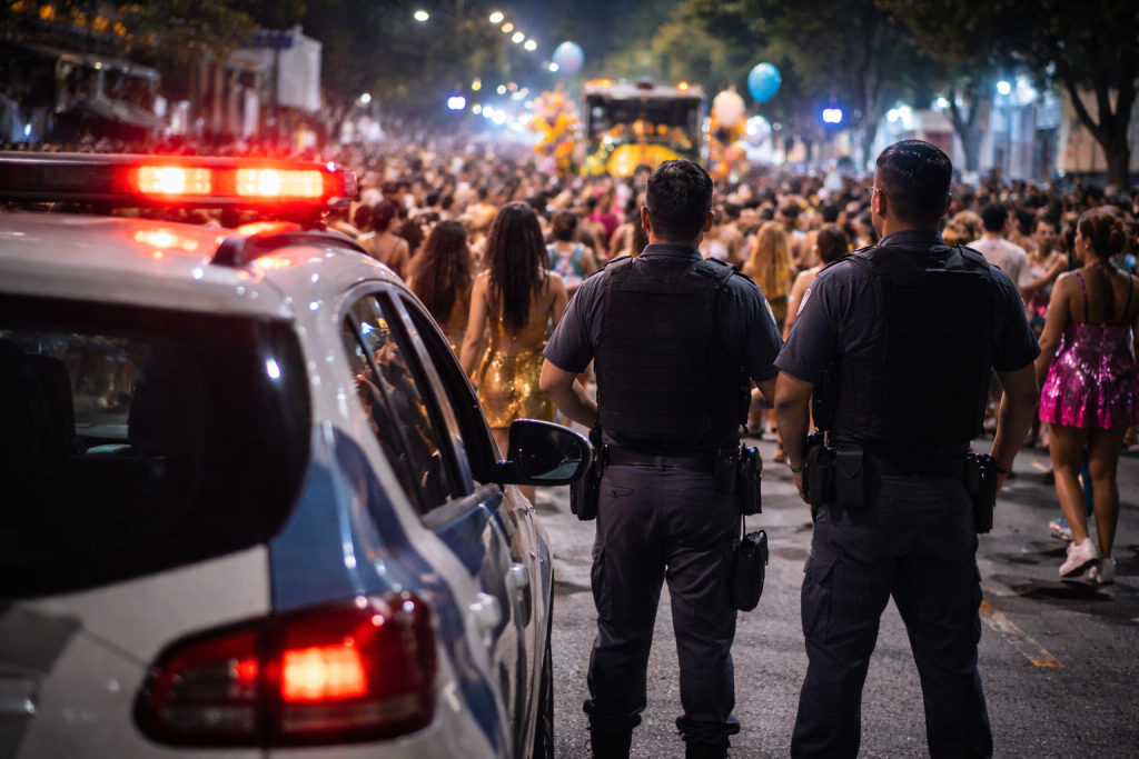 A Polícia Militar mantém um esquema especial voltado à segurança feminina durante o Carnaval em São Paulo. Policiais militares femininas atuam no acolhimento imediato de vítimas de importunação sexual e na condução de suspeitos.