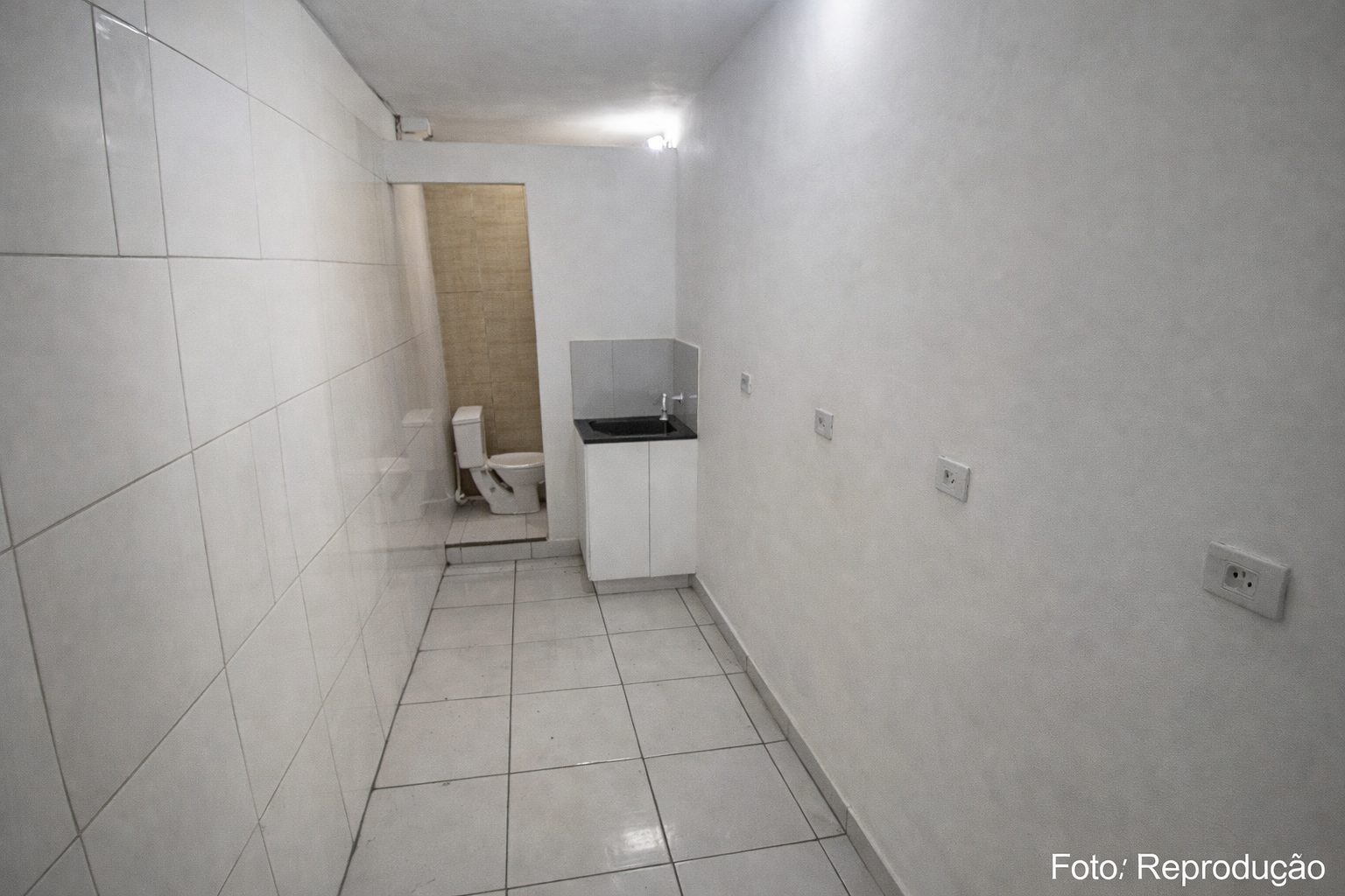 O ambiente compacto evidencia a limitação física do imóvel, com estrutura voltada apenas para necessidades básicas. A circulação no espaço é restrita, o que gerou repercussão entre usuários nas redes sociais.